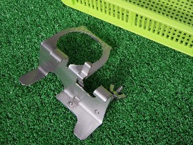 ホルダーのフック2箇所と受け部の2箇所でトレイを保持して、ロックプレートで外れないようにしています。