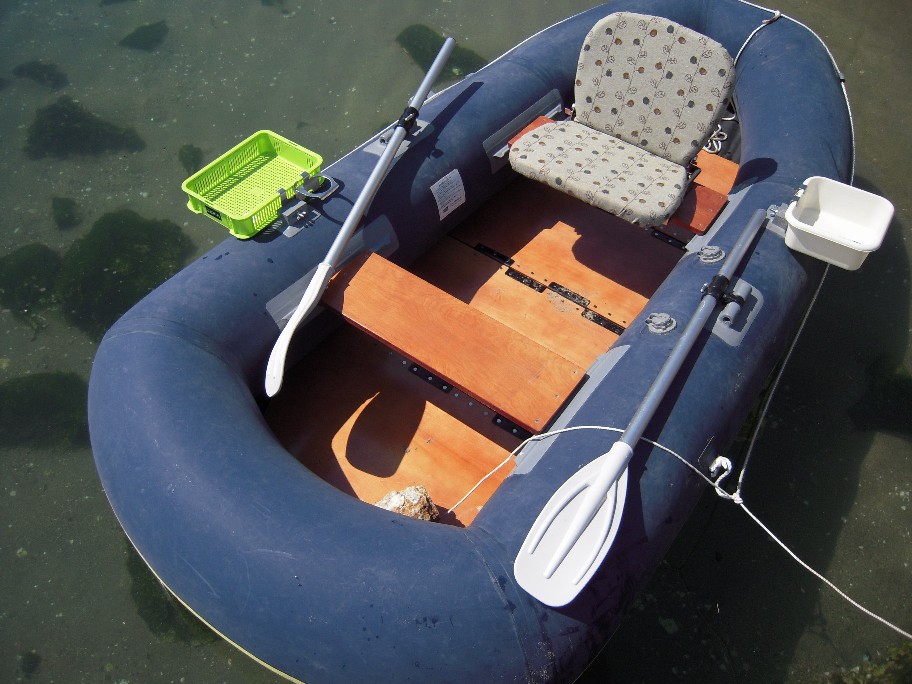 ところで、ゴムボートで釣りをしていて困るのが、撒餌のアミがボートの中に散乱する事と、食事中の弁当、カンビール、酒のつまみなどを置く場所がないことです。やむをえず腰掛板の上に置いているとボートなどが揺れたときにいつの間にか下に落ちて撒餌と一緒になり食べられなくなることがいつものことでした。