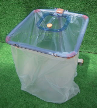 2、ポリ袋の取り付けは、枠フレームの内側から枠フレームの外周に反転させればOK。