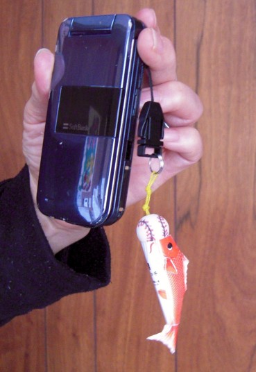 携帯電話につけたた鯉キャッチ携帯ストラップ