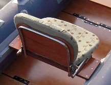 座部の底は 腰掛板にぴったりで重心を下げ、左右を幅広い取り付けにして更に安定させた。 前後の取付け位置もバランス。